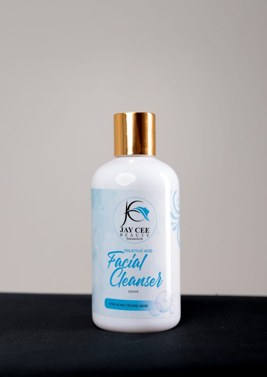This Acne fighting facial cleanser is formulated with salicylic acid which is an exfoliant that penetrates deep into your pores to unglue and push out the mix of oil, dirt, bacteria that cause acne breakouts. It also contains african black soap which is an ancient african secret for healing the skin. It is enriched with very moisturizing natural oils to prevent your skin from drying out when you cleanse.