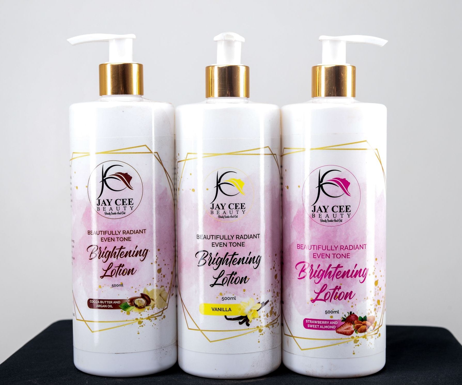 Experience  soft, smooth, intensely moisturized and glowing skin with our brightening Lotion in the oh so yummy scent of cocoa butter. This lotion is suitable for all skin types and can be used daytime or evening.  Available in 3 scents for you to choose from; Vanilla, strawberry and cocoa butter