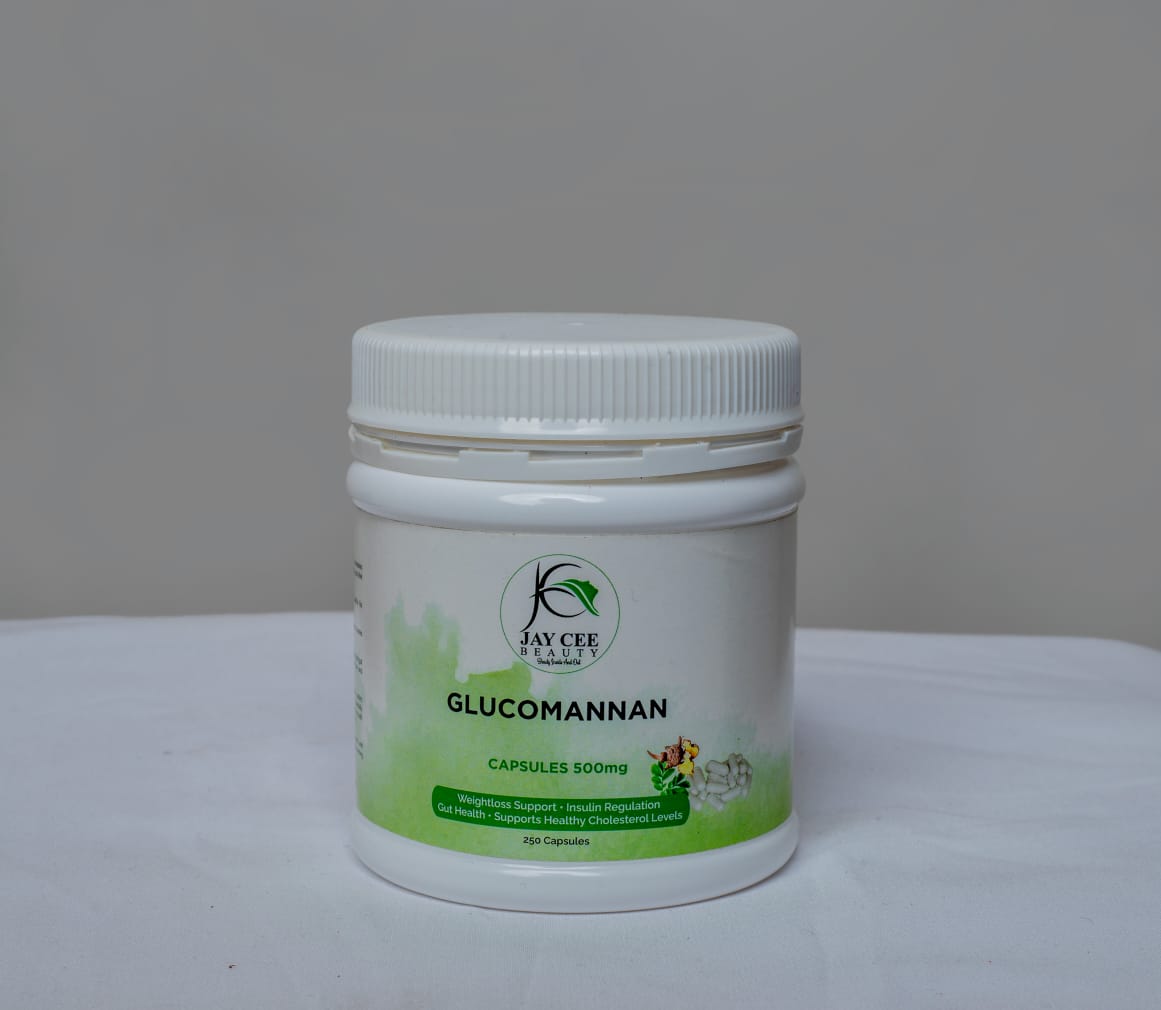 Glucomannan powder from Konjac root, gelatin capsules